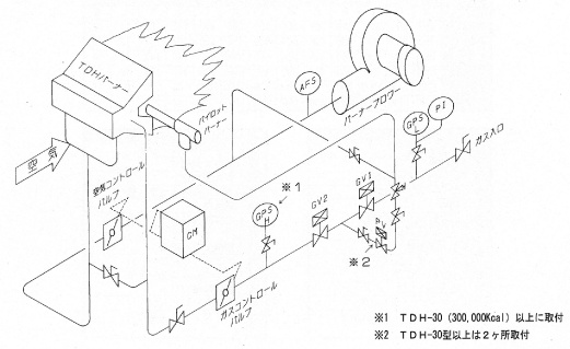 ダクトバーナーTDHシリーズの燃焼フロー図例